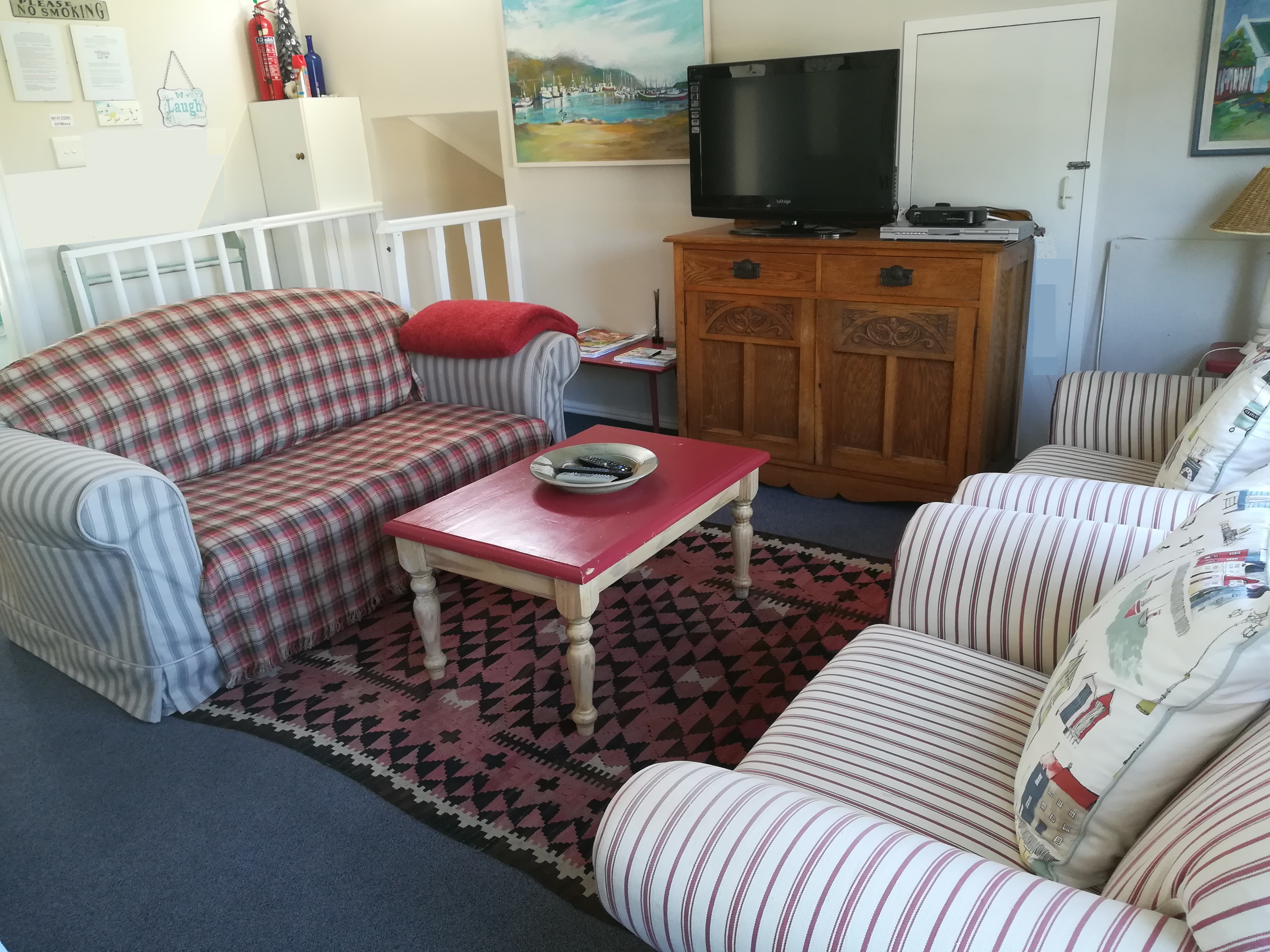 The lounge and dining area leads to an outside wooden deck from where you can hear the whales in the bay from June to November each year. Enjoy relaxed outdoor living, while soaking up the sun on warm summer days, or sipping sun downers on sultry evenings. Put your feet up and enjoy watching TV with DSTV or a complimentary DVD movie from our library.